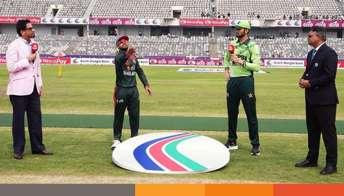 পাকিস্তানের বিপক্ষে তিন ম্যাচের ওয়ানডে সিরিজের প্রথম ম্যাচে টসে জিতে ফিল্ডিংয়ের সিদ্ধান্ত নিয়েছে বাংলাদেশ। বুধবার মিরপুরের শের-ই-বাংলা জাতীয় ক্রিকেট স্টেডিয়ামে বাংলাদেশ সময় দুপুর ২টা ১৫ মিনিটে শুরু হবে ম্যাচটি।