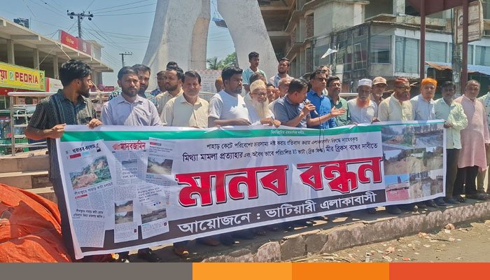 মানববন্ধনে নারী-পুরুষ, শিশু-কিশোরসহ বিভিন্ন শ্রেণি-পেশার মানুষ স্বতঃস্ফূর্তভাবে অংশ নেন। বক্তারা অভিযোগ করেন, দীর্ঘদিন ধরে মীর গ্রুপের মালিকানাধীন ‘মীর ব্রিক’ নামের ইটভাটা নির্বিচারে পাহাড় কেটে পরিবেশের মারাত্মক বিপর্যয় ঘটাচ্ছে।