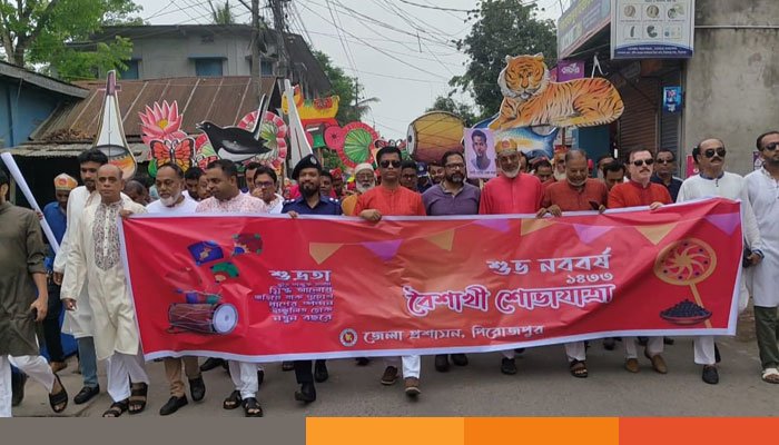 পহেলা বৈশাখ উপলক্ষে পিরোজপুর জেলা প্রশাসনের উদ্যোগে বর্ণাঢ্য বৈশাখী শোভাযাত্রা, লোকমেলা ও সাংস্কৃতিক অনুষ্ঠানের আয়োজন করা হয়েছে।
