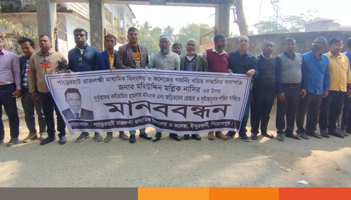 মঙ্গলবার (১৭ ফেব্রুয়ারি) সকাল সাড়ে ১১ টায় পাড়েরহাট রাজলক্ষ্মী মাধ্যমিক বিদ্যালয় ও কলেজ এর সামনে শিক্ষক ও শিক্ষার্থীদের আয়োজনে এ মানববন্ধন অনুষ্ঠিত হয়।