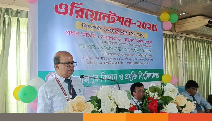সভাপতির বক্তব্যে উপাচার্য অধ্যাপক ড. মো. শহীদুল ইসলাম বলেন, “অনেক ভালো ফলাফল করেও অনেকেই বিশ্ববিদ্যালয়ে ভর্তি হতে পারেনি, কিন্তু তোমরা ভর্তি হতে পেরেছ—এ জন্য তোমাদের শুভেচ্ছা জানাই, তোমাদের আমি ভাগ্যবানই বলব। তবে এটা কেবল সফলতার একটি ধাপ; সামনে তোমাদের জন্য অপেক্ষা করছে আরও অনেক বড় লক্ষ্য ও অর্জন। আমরা সবাই একে অপরের সহযোগিতায় এগিয়ে যাব।” তিনি জুলাই গণঅভ্যুত্থানে আহতদের দ্রুত সুস্থতা ও নিহতদের আত্মার মাগফিরাত কামনা করেন।