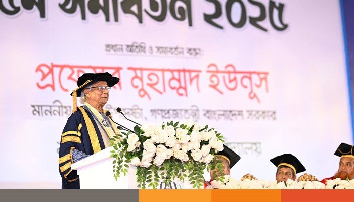 বুধবার (১৪ মে) চট্টগ্রাম বিশ্ববিদ্যালয়ের পঞ্চম সমাবর্তন অনুষ্ঠিত হয়। অনুষ্ঠানে প্রধান অতিথি হিসেবে উপস্থিত ছিলেন অন্তর্বর্তী সরকারের প্রধান উপদেষ্টা নোবেল বিজয়ী অধ্যাপক ড. মুহাম্মদ ইউনূস। সেখানে সমাবর্তন বক্তা হিসেবে দেওয়া বক্তব্যে তিনি এসব কথা বলেন।