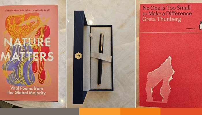 তারেক রহমান শুভেচ্ছা উপহার হিসেবে, একটি ফাউন্টেন পেন, Greta thunberg-এর ‘No One Is too Small to Make a Difference’ এবং ‘Nature Matters’– Edited by Mona Arshi and Karen Mccarthy Woolf বই দুটি প্রধান উপদেষ্টাকে উপহার হিসেবে দেন।