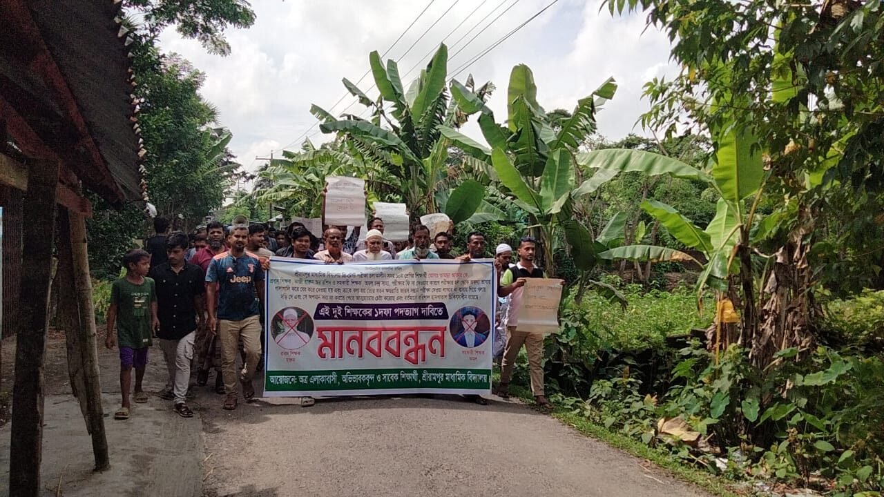 প্রি টেস্ট পরীক্ষার ফি দিতে না পারায় অকথ্য ভাষায় গালমন্দ করে দশম শ্রেনীর এক ছাত্রীকে হল থেকে বের করে দেয়ার লজ্জায় বাড়িতে গিয়ে গলায় ফাঁস লাগিয়ে আত্মহত্যার চেষ্টায় আহত ঘটনায় ও অনিয়ম এবং দুর্নীতির অভিযোগে পটুয়াখালীর শ্রীরামপুর মাধ্যমিক বিদ্যালয়ের প্রধান শিক্ষকসহ দুই শিক্ষকের অপসারনের দাবীতে মানববন্ধন ও বিক্ষোভ মিছিল করেছে বিদ্যালয়ের শিক্ষার্থী, অভিভাবকসহ এলাকাবাসী।