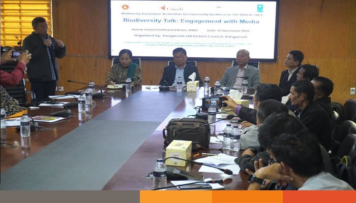 সোমবার (২২ ডিসেম্বর) সকালে রাঙামাটি পার্বত্য জেলা পরিষদের এনেক্স হলরুমে ‘পার্বত্য চট্টগ্রামে সম্প্রদায়ের সহনশীলতা বৃদ্ধির লক্ষ্যে জীববৈচিত্র্য প্রতিবেশ পুনরুদ্ধার প্রকল্প’ আয়োজিত এক সভায় এসব কথা বলেন বক্তারা। ‘জীববৈচিত্র্য নিয়ে গণমাধ্যমের সঙ্গে আলোচনা সভা’ শীর্ষক এ অনুষ্ঠানের সভাপতিত্ব করেন রাঙামাটি পার্বত্য জেলা পরিষদ সদস্য নাইউ প্রু মারমা (মেরী)।