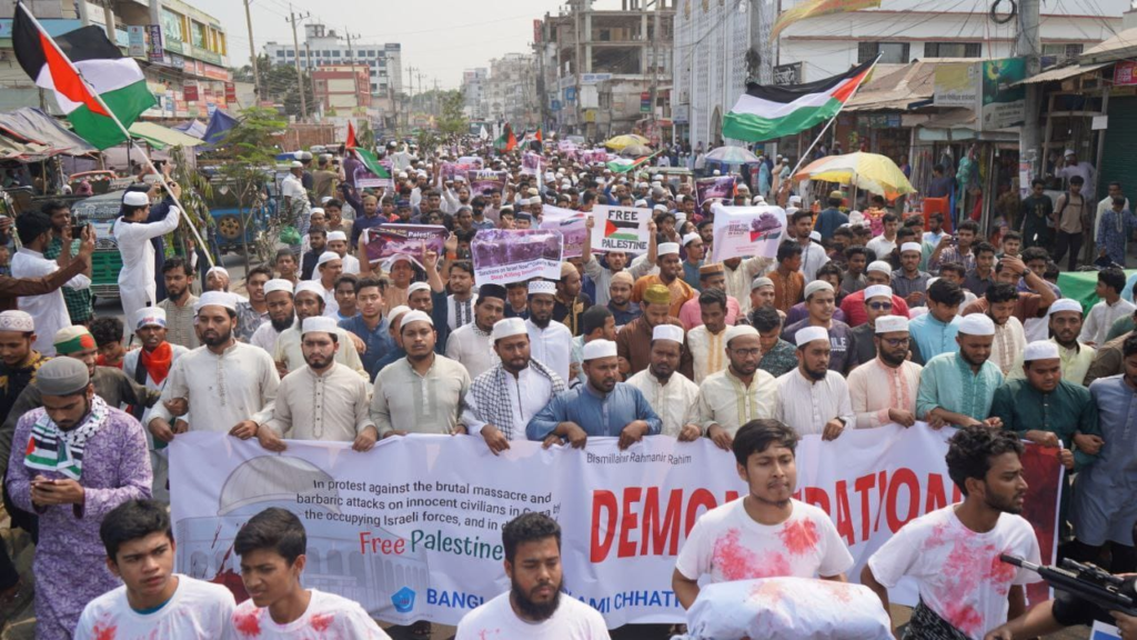 শান্তিচুক্তি লঙ্ঘন করে গাজায় ফিলিস্তিনিদের উপর নির্বিচারে ইসরাইল বাহিনীর হামলা ও হত্যার প্রতিবাদ এবং স্বাধীন ফিলিস্তিন রাষ্ট্রের দাবিতে নোয়াখালীতে বিক্ষোভ মিছিল করেছে বাংলাদেশ ইসলামি ছাত্রশিবির।