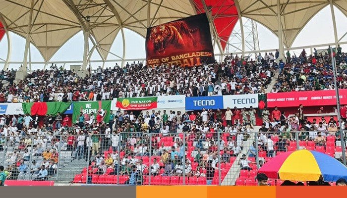 দুপুর আড়াইটায় দর্শকদের জন্য খুলে দেওয়া হয়েছিল স্টেডিয়ামের গেট। ঘণ্টা তিনেকের মধ্যেই গ্যালারির ৯০ ভাগ চেয়ার পূর্ণ। এখনো বাইরে যে লম্বা লাইন তাতে কোনো আসন ফাঁকা থাকার সম্ভাবনা নেই।