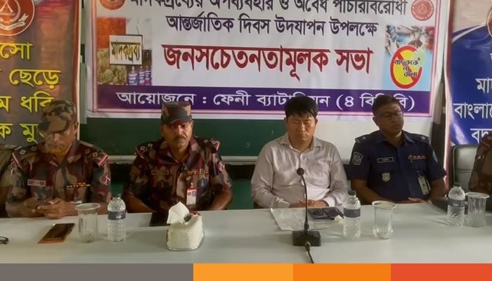 মাদক দ্রব্যের অপব্যবহার ও অবৈধ পাচারবিরোধী আন্তর্জাতিক দিবস উপলক্ষে ফেনী ব্যাটালিয়ন (৪ বিজিবি) এর উদ্যোগে ফেনীর ছাগলনাইয়ায় মাদকবিরোধী জনসচেতনতামূলক সভা অনুষ্ঠিত হয়েছে। বৃহস্পতিবার (২৭ জুন) সকালে পূর্ব ছাগলনাইয়া সরকারি প্রাথমিক বিদ্যালয় মিলনায়তনে এ সভার আয়োজন করা হয়।