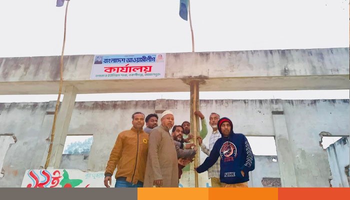 বকশীগঞ্জে জয়বাংলা স্লোগান দিয়ে, কার্যক্রম নিষিদ্ধ আওয়ামী লীগ কার্যালয়ে পতাকা উত্তোলন