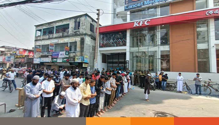 আন্দোলন চলাকালে কেএফসির সামনের সড়কে জোহরের জানাজ আদায় করে বিক্ষুব্ধরা। আন্দোলন চলাকালে পুলিশ ও সেনাবাহিনীর সদস্যরা ঘটনাস্থলে উপস্থিত থাকায় অপ্রীতিকর ঘটনা ঘটেনি।