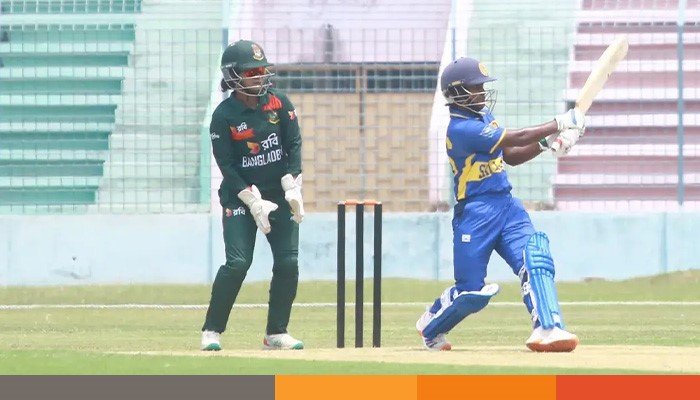 চতুর্থ উইকেটে হারশিথা সামারাবিক্রমা ও হানসিমা করুনারত্নের ৭৭ রানের জুটিতে জয়ের ভিত পেয়ে যায় সফরকারীরা। তবে জয় নিয়ে ফিরতে পারেননি এই দুই ব্যাটারের কেউই। ৪০ রানে করুনারত্নে ও ৫০ রানে সামারাবিক্রমা আউট হয়ে সাজঘরে ফেরেন। আর ৪ রানে ফেরেন কৌশানি। এরপর জয় নিয়ে মাঠ ছাড়েন কাভিশা ও নীলাক্ষী।
