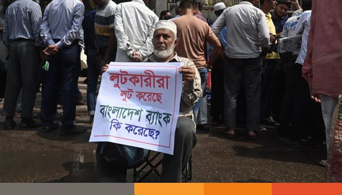 বাংলাদেশ ব্যাংকের সামনে একীভূত ব্যাংকের ‘আমানতকারীদের ব্যানারে’ বিক্ষোভ