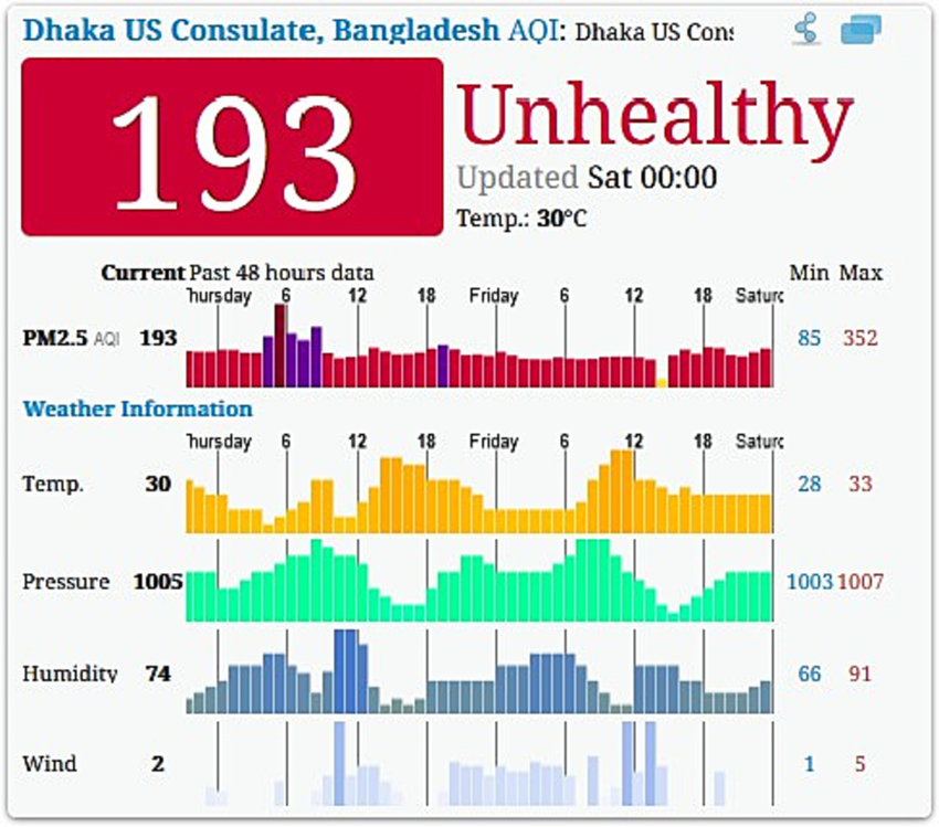বেশ কিছুদিন ধরেই বিশ্বের দূষিত শহরগুলোর তালিকায় উপরের দিকেই রয়েছে বাংলাদেশের রাজধানী ঢাকা। এর আগে গত এক সপ্তাহে ৪ দিন বায়ুদূষণে শীর্ষে ছিল ঢাকা।