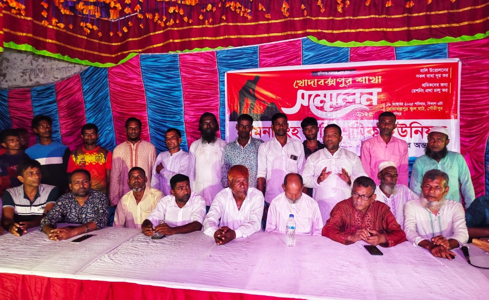 ময়মনসিংহে উৎসবমূখর পরিবেশে খোদাবক্সপুর শাখার বালি শ্রমিক ইউনিয়নের কর্মী সম্মেলনে ১১ সদস্য বিশিষ্ট নতুন শাখা কমিটি ঘোষনা করা হয়েছে। এতে বালি শ্রমিক ইউনিয়নের সদস্যদের মধ্যে উৎসাহ উদ্দীপনার সৃষ্টি হয়েছে।