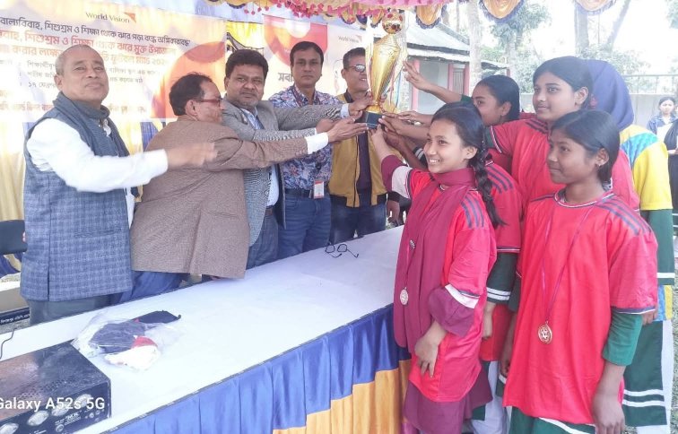 বাল্যবিবাহ, শিশুশ্রম ও বিদ্যালয় থেকে ঝড়ে পড়া মুক্ত দিনাজপুর সদর উপজেলা ঘোষনার প্রচারাভিযানের অংশ হিসেবে ফুটবল খেলা শেষে পুরস্কার বিতরণ ও সচেতনতামূলক আলোচনা সভায় সভাপতিত্ব করেন সভাপতির বক্তব্যে দিনাজপুর এরিয়া প্রোগ্রাম কো অডিনেশন অফিস ওয়ার্ল্ড ভিশন বাংলাদেশ সিনিয়র ম্যানেজার সেবাস্তিয়ান পিউরীফিকেশন বলেন বাল্যবিবাহ ও শিশুশ্রম শুধু আইনের দ্বারা প্রতিরোধ করা সম্ভব নয়। এর জন্য চাই সামাজিক সচেতনতা।