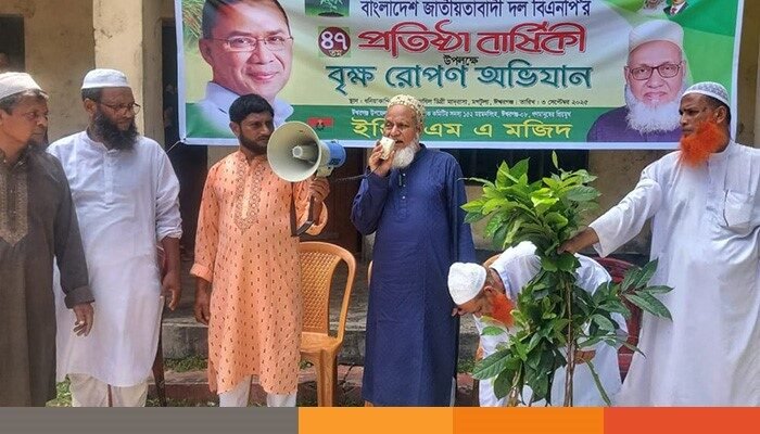 বিএনপির প্রতিষ্ঠাবার্ষিকী উপলক্ষে ঈশ্বরগঞ্জে বৃক্ষরোপণ ও চারা বিতরণ ইন্জিঃ মজিদের