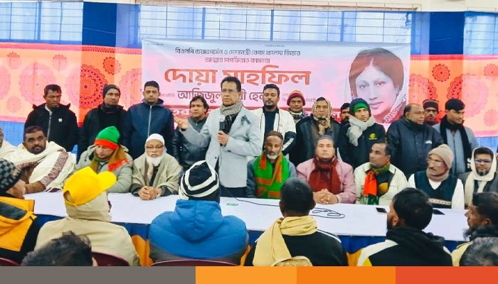 মঙ্গলবার (৬ জানুয়ারি) দুপুরে তেরখাদা মুক্তিযোদ্ধা মিলনায়তনে কৃষক দল আয়োজিত সাবেক প্রধানমন্ত্রী ও বিএনপি চেয়ারপারসন দেশনেত্রী বেগম খালেদা জিয়ার রুহের মাগফেরাত কামনায় দোয়া ও আলোচনা সভায় প্রধান অতিথির বক্তব্যে তিনি এসব কথা বলেন। আজিজুল বারী হেলাল বলেন, রূপসা, তেরখাদা ও দিঘলিয়া অঞ্চলে পর্যাপ্ত পানির অভাবে বিপুল পরিমাণ কৃষিজমি দীর্ঘদিন ধরে অনাবাদি পড়ে আছে। আল্লাহ যদি আমাদের সুযোগ দেন, তবে খাল খননের মাধ্যমে এসব জমিতে কৃষি ও মৎস্য চাষের নতুন সম্ভাবনা সৃষ্টি করা হবে। এতে কৃষকের মুখে হাসি ফিরবে এবং দেশের অর্থনীতি হবে আরও শক্তিশালী। তিনি আরও বলেন, দেশনেত্রী বেগম খালেদা জিয়া বাংলাদেশের মানুষের জন্য আজীবন আপোষহীন সংগ্রাম করে গেছেন। তিনি বলেছিলেন‘বাংলাদেশের বাইরে আমার কোনো ঠিকানা নেই।আজ তিনি শুধু একটি দলের নেত্রী নন, তিনি সকল রাজনৈতিক দল ও সকল ধর্মের মানুষের কাছে একটি ঐক্যের প্রতীক। বিশেষ করে নারী ক্ষমতায়ন ও নারীর রাজনৈতিক অধিকার প্রতিষ্ঠায় তার অবদান ইতিহাসে স্মরণীয় হয়ে থাকবে। আজিজুল বারী হেলাল বলেন, “আমরা গর্বিত এমন একজন নেত্রীর কর্মী হতে পেরে। তার সঙ্গে রাজনীতি করতে পারাটাই আমাদের জীবনের বড় অর্জন। পরে সন্ধ্যায় তেরখাদার সাচিয়াদাহ বাজারে দেশনেত্রী বেগম খালেদা জিয়ার রুহের মাগফেরাত কামনায় আয়োজিত আরেকটি দোয়া মাহফিলে প্রধান অতিথি হিসেবে উপস্থিত থাকেন তিনি।