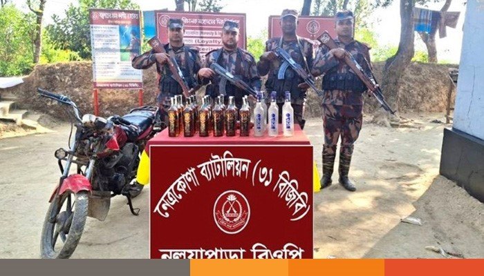 বিজিবি’র অভিযান: নেত্রকোনায় ভারতীয় মদ ও মোটরসাইকেল জব্দ
