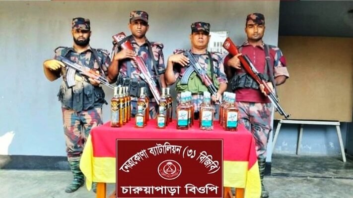 বিজিবি’র নেত্রকোনা ব্যাটালিয়ন কর্তৃক মালিকবিহীন বিদেশী মদ জব্দ