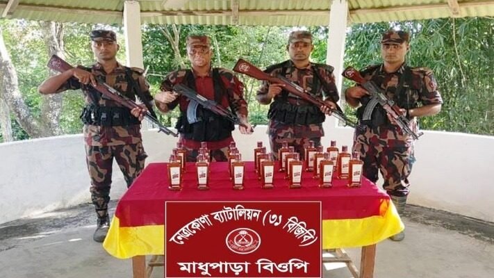 বিজিবি’র নেত্রকোনা ব্যাটালিয়ন কর্তৃক ২১ বোতল বিদেশী মদ জব্দ