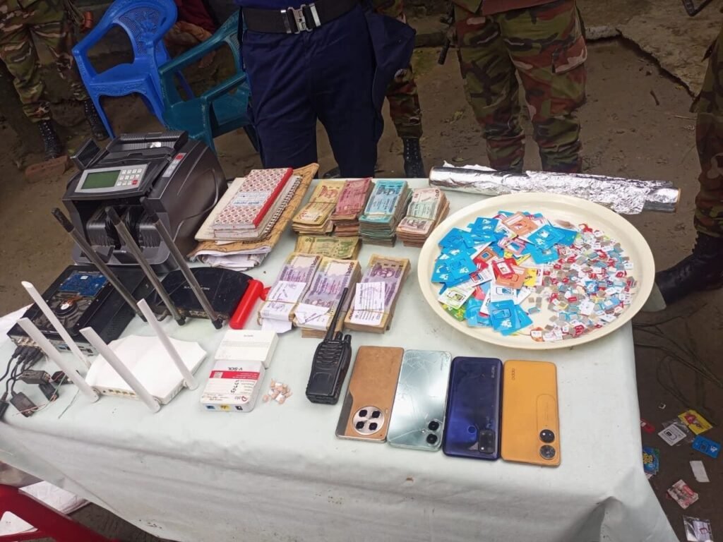 অভিযানে গোবিন্দগঞ্জ উপজেলার বিশ্বনাথপুর গ্রামের আজিজার রহমানের ছেলে মাসুম বিল্লাহ(২৫) ও একই গ্রামের নেছাম উদ্দিনের ছেলে বুলু মিয়া(৫০) গ্রেফতার করা হয়। এসময তাদের ঘর থেকে উদ্ধার করা হয় একটি ল্যাপটপ, ডেস্কটপ কম্পিউটার, অ্যান্ড্রয়েড, বাটন ফোন, ওয়াকিটকি, সিম কার্ড, পেনড্রাইভ, রাউটার, সিসিটিভি ক্যামেরা, টাকার গননা মেশিন সরঞ্জাম, মাদকসহ নগত ১১ লাখ টাকা উদ্ধার করা হয়েছে।