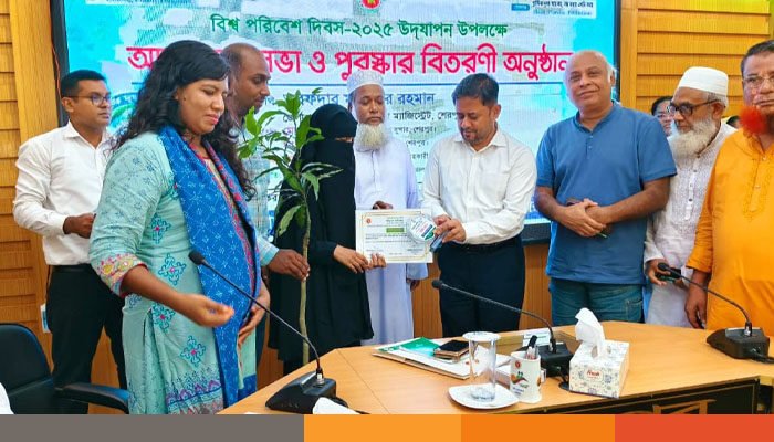 জেলা প্রশাসন ও পরিবেশ অধিদপ্তর জেলা কার্যালয়ের যৌথ আয়োজনে অনুষ্ঠানমালা শেষে রচনা ও শিশু-কিশোর চিত্রাংকন প্রতিযোগিতার বিজয়ীদের মাঝে অতিথিরা পুরষ্কার হিসেবে ক্রেস্ট, গাছের চারা প্রদান ও সনদপত্র বিতরণ করেন।