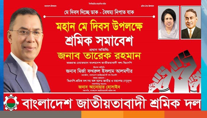 বৃহস্পতিবার (১ মে) দুপুর ২টায় নয়া পল্টনে বিএনপির কেন্দ্রীয় কার্যালয়ের সামনে শ্রমিক সমাবেশ হবে।