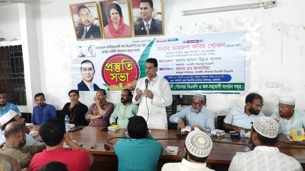 শনিবার (৩০) আগস্ট সন্ধ্যায় চিনিশপুর এলাকায় জেলা বিএনপির কার্যালয়ে বিএনপি’র ৪৭ তম প্রতিষ্ঠা বার্ষিকী উদযাপন করার লক্ষ্যে মাধবদী বিএনপির আয়োজিত প্রস্তুতি সভায় প্রধান অতিথির বক্তব্যে তিনি এসব কথা বলেন।