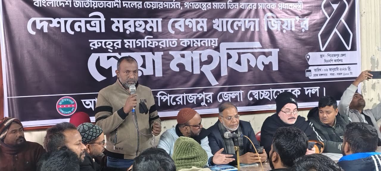 মঙ্গলবার (৬ জানুয়ারি) দুপুরে পিরোজপুর জেলা বিএনপির কার্যালয়ে স্বেচ্ছাসেবক দলের আয়োজনে মরহুম বেগম খালেদা জিয়ার রুহের মাগফিরাত কামনায় অনুষ্ঠিত দোয়া মাহফিলে তিনি এ দাবি করেন।