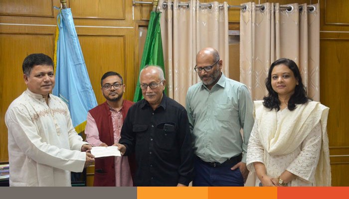 আজ মঙ্গলবার (০৩ মার্চ ২০২৬) দুপুরে উপাচার্য দপ্তরে আয়োজিত এক সংক্ষিপ্ত অনুষ্ঠানে বিশ্ববিদ্যালয়ের উপাচার্য প্রফেসর ড. মোঃ শওকাত আলীর নিকট ‘হাসনা ইলাহী মেমোরিয়াল স্কলারশিপ ফর ফিমেল স্টুডেন্ট অব ফ্যাকাল্টি অব স্যোসাল সায়েন্স’ এর অধীনে স্কলারশিপের চেক হস্তান্তর করেন ঢাকা বিশ্ববিদ্যালয় এবং যুক্তরাষ্ট্রের ব্লুমসবার্গ ইউনিভার্সিটি অব পেনসিলভানিয়ার সাবেক প্রফেসর ড. কে. মুশতাক ইলাহী।