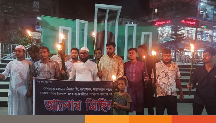 আজ শনিবার রাত ৮ টার দিকে গাইবান্ধা পৌর পার্ক থেকে জুলাই মঞ্চ ব্যানারে সারা দেশে চলমান চাঁদাবাজি, হত্যাযজ্ঞ, সন্ত্রাসবাদ কায়েম ও ঢাকায় পাথর নিক্ষেপ করে ব্যবসায়ীকে বর্বরতম হত্যার প্রতিবাদে জানিয়ে মশাল মিছিল বের করা হয়। মশাল মিছিলটি শহরের পৌর পার্ক এলাকা প্রদক্ষিন শেষ পূর্নরায় শহীদ মিনারে সমাবেশ হয়। সেখানে তারা এক সংক্ষিপ্ত সমাবেশ করেন। সমাবেশে বক্তব্য দেন, গাইবান্ধা জুলাই মঞ্চের আহ্বায়ক আমিনুর রহমান, মুখপাত্র মোশাররফ হোসেন,মুখ্যপ্রতিনিধি আবুল বাশার,সিনিয়র যুগ্ন আহ্বায়ক এস এস মামুন, মুখ্য সমন্বয়ক শাহাজ উদ্দিন রিয়াদসহ অনেকে।