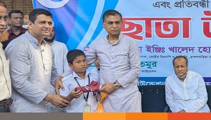 ব্রাহ্মণবাড়িয়ায় প্রতিবন্ধী ব্যক্তি ও তাদের পরিবারের সঙ্গে আলোচনা সভা অনুষ্ঠিত হয়েছে। এসময় ২০০ প্রতিবন্ধীর মাঝে ছাতা বিতরণ করা হয়েছে। সৈয়দ তৈমুর ফাউন্ডেশন এই অনুষ্ঠানের আয়োজন করে।