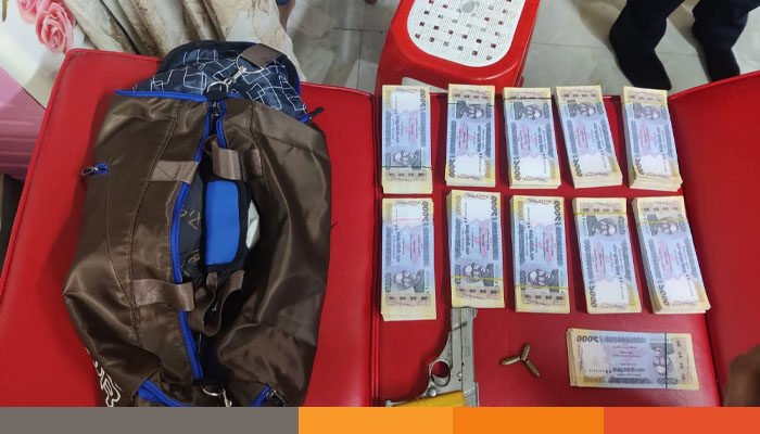 ব্রাহ্মণবাড়িয়ার নবীনগরে একটি বিউটি পার্লার থেকে বিপুল পরিমাণ জাল টাকা, পিস্তল ও গুলি উদ্ধার করেছে পুলিশ। রোববার বিকেলে উপজেলা সদরের আদালত পাড়া এলাকায় বউ সাজ বিউটি পার্লারে অভিযান চালিয়ে এসব উদ্ধার করে পুলিশ। এসময় একটি ব্যাগে নগদ ১০ লাখ ১৮ হাজার টাকা, একটি বিদেশী পিস্তল ও তিন রাউন্ড গুলি উদ্ধার করা হয়।
