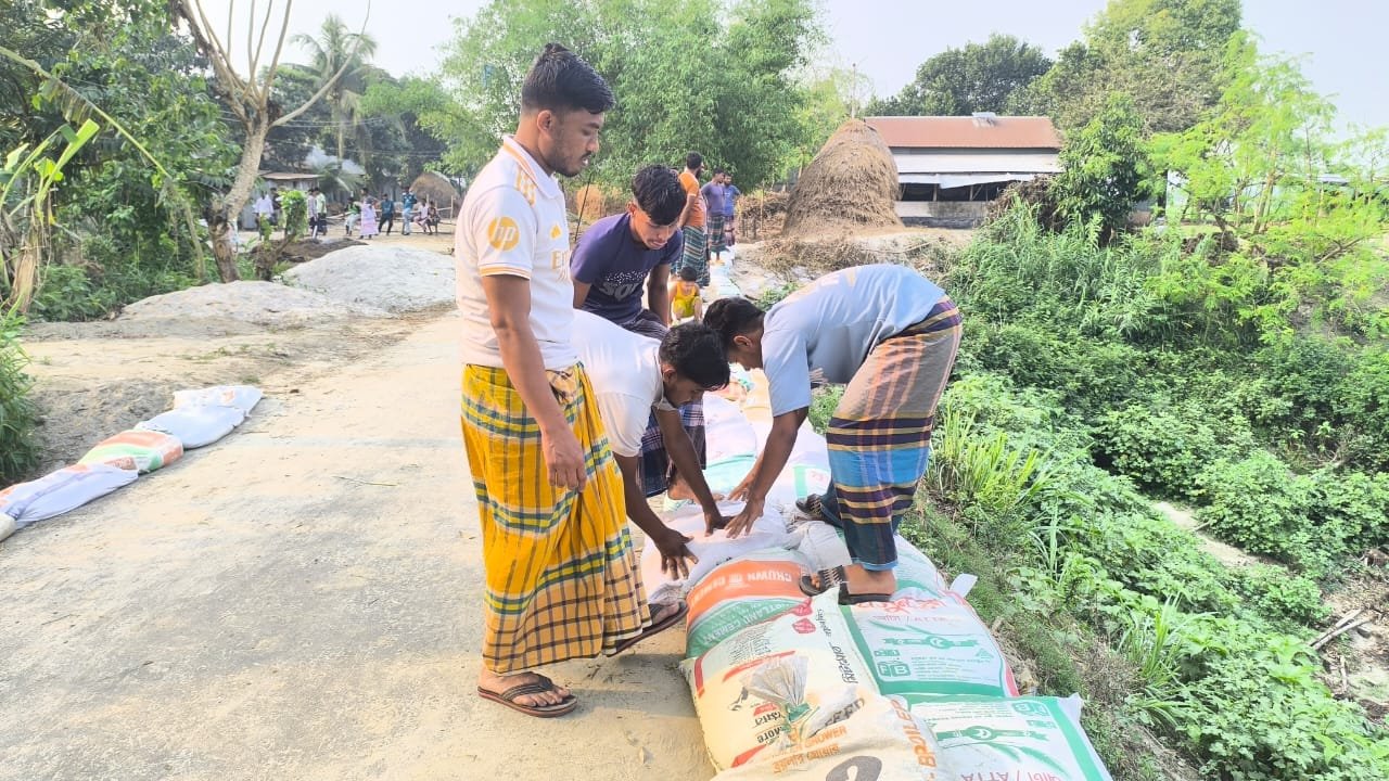 স্বেচ্ছাশ্রমের মাধ্যমে রাস্তার দু’পাশে মাটি কেটে শক্তিশালী করা হয় এবং ভাঙন প্রতিরোধে বালুভর্তি সেফটি ব্যাগ স্থাপন করা হয়। ফলে সম্ভাব্য ভাঙন অনেকাংশে ঠেকানো সম্ভব হয়েছে এবং সাধারণ মানুষের চলাচলে স্বস্তি ফিরে এসেছে।