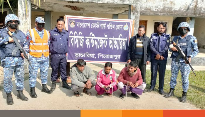 ভাণ্ডারিয়া কোস্টগার্ড কন্টিনজেন্ট কমান্ডার মো. রাজু আহম্মেদ জানান, গোপন সংবাদের ভিত্তিতে অভিযান চালিয়ে বিষ প্রয়োগ করে মাছ শিকারের সময় তিনজনকে আটক করা হয়। অভিযানে তাদের ব্যবহৃত দুটি নৌকা জব্দ করা হয়েছে। তবে এ সময় খালেক নামের একজন জেলে পালিয়ে যায়।
