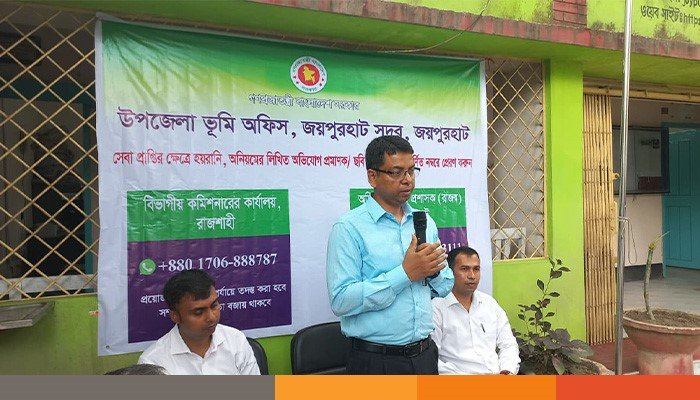 জয়পুরহাটে ভূমি সেবা সহজ করতে এবং সাধারণ মানুষের হয়রানি কমাতে বিশেষ উদ্যোগ নেওয়া হয়েছে। এখন থেকে ভূমি সংক্রান্ত যেকোনো অভিযোগ সেবাগ্রহীতারা সরাসরি ঊর্ধ্বতন কর্মকর্তাদের মোবাইল ফোনে জানাতে পারবেন। বৃহস্পতিবার (২৩ এপ্রিল) দুপুরে জয়পুরহাট সদর উপজেলা ভূমি অফিস চত্বরে এই সেবার উদ্বোধন করেন জেলা প্রশাসক (ডিসি) মো. আল-মামুন মিয়া।