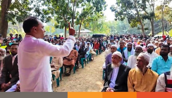 তিনি এ ধরনের কর্মকাণ্ডকে সাধারণ মানুষের সাথে ধর্মের নামে ‘প্রতারণা’ হিসেবে অভিহিত করেন। বক্তব্যের শেষ পর্যায়ে তিনি উপস্থিত জনতাকে সাক্ষী রেখে অঙ্গীকার করেন, যদি তিনি নির্বাচিত হন তবে শতভাগ সততার সাথে দায়িত্ব পালন করবেন।