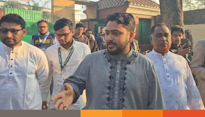 ঢাকা-১১ আসনে এগারো দলীয় জোটের প্রার্থী ও জাতীয় নাগরিক পার্টির (এনসিপি) আহ্বায়ক নাহিদ ইসলাম ভোট প্রদান করার জন্য কেন্দ্রে এসেছেন।
