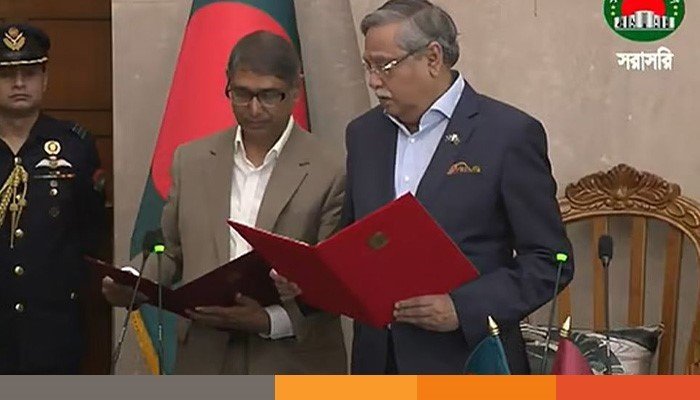 জাতীয় সংসদ ভবনে নিজ কার্যালয়ে রাষ্ট্রপতি মো. সাহাবুদ্দিন তাকে শপথ পাঠ করান।