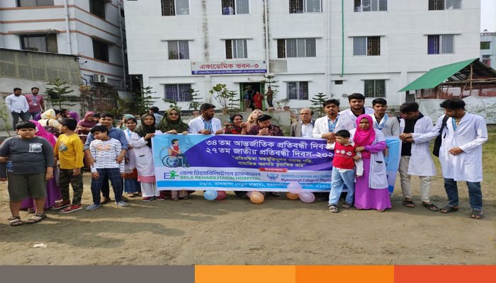’প্রতিবন্ধিতা অন্তর্ভুক্তিমূলক সমাজ গড়ি, সামাজিক অগ্রগতি ত্বরান্বিত করি’, এই স্লোগান কে সামনে রেখে প্রতিবারের মত এবারেও ময়মনসিংহ কলেজ অব ফিজিওথেরাপি এণ্ড হেলথ সায়েন্সেস, বেলা রিহ্যাবিলিটেশন হাসপাতাল, ময়মনসিংহ, এবং জোসনার আলো (প্রতিবন্ধী শিশুদের চিকিৎসা ভিত্তিক বিশেষ শিক্ষা কার্যক্রম) এর আয়োজনে দিবসটি পালন করেছে। এই উপলক্ষ্যে কেক কাটা, আলোচনা সভা অনুষ্ঠিত হয়েছে।