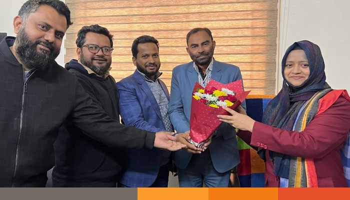 ময়মনসিংহের ত্রিশাল প্রেসক্লাবের দ্বি বার্ষিক সম্মেলন ২০২৬- ২০২৭ নির্বাচনে সভাপতি পদে নাগরিক টিভির জেলা প্রতিনিধি খোরশিদুল আলম মজিব নির্বাচিত হওয়ায় ময়মনসিংহ কলেজ অফ ফিজিওথেরাপি এন্ড হেলথ সায়েন্সেস’র পক্ষ থেকে ফুলেল শুভেচ্ছা ও অভিনন্দন জানান। এ সময় কলেজ ভারপ্রাপ্ত অধ্যক্ষ ডাক্তার রোকশানা আক্তার,ময়মনসিংহ কলেজ অফ ফিজিওথেরাপি এন্ড হেলথ সায়েন্সেস’র কো- অর্ডিনেটর ও ফিজিওথেরাপি বিভাগের বিভাগীয় প্রধান সহকারী অধ্যাপক ডা. এমএকে জাহিদ, সহকারি পরিচালক ইমরান আহমেদ, হেড অর্থ ও হিসাব দিদার হোসেন প্রমুখ উপস্থিত ছিলেন। কলেজ অধ্যক্ষ ডা. রোকশানা আক্তারসহ উপস্থিত কর্মকর্তারা প্রেসক্লাব সভাপতি মজিব এবার নিয়ে ৬ষ্ঠ বার নির্বাচিত হওয়ায় তার সু স্বাস্থ্য দীর্ঘায়ু কামনা করে বস্ত নিষ্ঠ সংবাদ পরিবেশন করে দেশ ও জনগনের কল্যাণে ভুমিকা রাখার আহবান জানান।