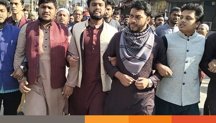 জুম্মার নামাজের পর নগরীর রেলওয়ে কৃষ্ণচূড়া চত্বর থেকে একটি বিক্ষোভ মিছিল বের হয়ে গাঙ্গিনারপাড় মোড়ে সংক্ষিপ্ত সমাবেশ করে।