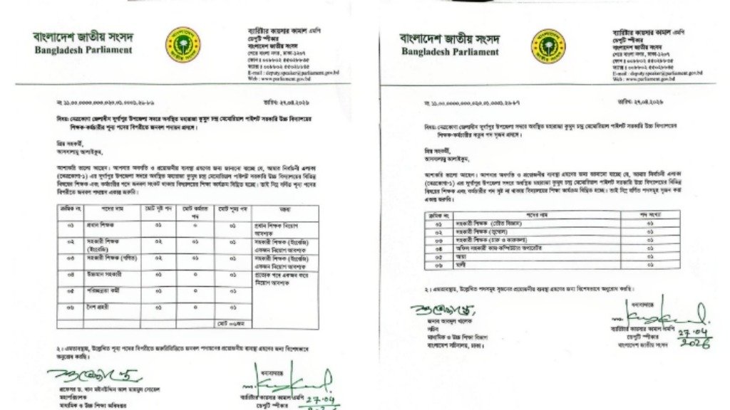 চিঠিতে উল্লেখিত শূন্য পদগুলো হলো- একজন করে প্রধান শিক্ষক, সহকারী শিক্ষক (ইংরেজি), সহকারী শিক্ষক (গণিত), উচ্চমান সহকারী, পরিচ্ছন্নতা কর্মী ও নৈশ প্রহরী।