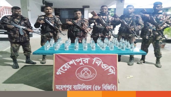 ঝিনাইদহের মহেশপুর ব্যাটালিয়ন (৫৮ বিজিবি) ২১ নভেম্বর বিকেল ৩টা ১৮ মিনিটে পাঠানো প্রেস রিলিজে জানায়, গত ২০ নভেম্বর সীমান্তে টানা অভিযানে ভারতীয় মদ উদ্ধার ও অবৈধভাবে সীমান্ত পারাপারের সময় দুই বাংলাদেশিকে আটক করা হয়েছে।