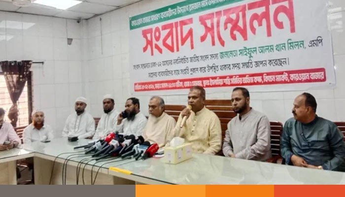 সোমবার কাওরান বাজারের কিচেন মার্কেটে ইসলামিয়া শান্তি সমিতির আয়োজনে এক সংবাদ সম্মেলনে এ ঘোষণা দেওয়া হয়। এ সময় সেখানে উপস্থিত ছিলেন ঢাকা-১২ আসনের সংসদ সদস্য সাইফুল আলম মিলন। ব্যবসায়ীদের ওই সংবাদ সম্মেলনে সম্মতি প্রকাশ করে তিনি সেখানে উপস্থিত হন বলে জানানো হয় সংবাদ সম্মেলনে।