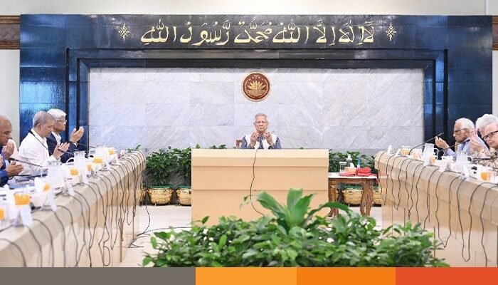 আজ বৃহস্পতিবার সকালে প্রধান উপদেষ্টার কার্যালয়ে উপদেষ্টা পরিষদের নিয়মিত বৈঠক অনুষ্ঠিত হয়েছে। বৈঠকের শুরুতে মাইলস্টোন স্কুল অ্যান্ড কলেজে বিমান দুর্ঘটনায় নিহতদের স্মরণে শোক প্রস্তাব গ্রহণ করা হয়েছে, তাঁদের আত্মার প্রতি সম্মান জানিয়ে এক মিনিট নীরবতা পালন করা হয়েছে এবং নিহতদের রুহের মাগফিরাত কামনা করে মোনাজাত করা হয়েছে।