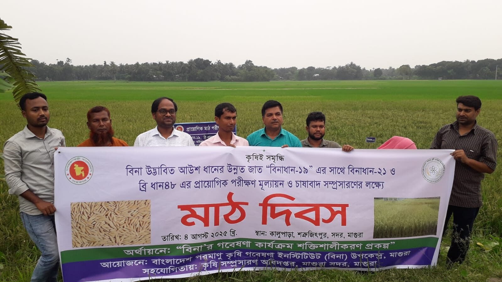 মাগুরায় বিনা উদ্ভাবিত আউশ ধানের উন্নত জাত বিনাধান-১৯ এর সাথে বিনাধান-২১ ও ব্রিধান-৪৮ এর প্রায়োগিক পরীক্ষণ মূল্যায়ন ও চাষাবাদ সম্প্রসারণের লক্ষ্যে মাঠ দিবস অনুষ্ঠিত হয়েছে। বাংলাদেশ পরমাণু কৃষি গবেষণা ইন্সটিটিউট (বিনা) উপকেন্দ্র মাগুরার আয়োজনে সোমবার বিকালে মাগুরা সদর উপজেলার শত্রুজিৎপুর ইউনিয়নের কালুপাড়া গ্রামে এই মাঠ দিবস অনুষ্ঠিত হয়।