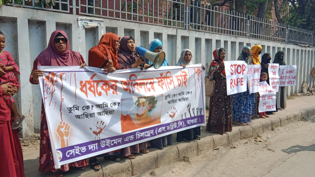 মাগুরায় এ সময় বক্তারা বলেন ধর্ষণের মামলার ফাঁসির প্রধান আসামি ও দোষীদের দ্রুত সময়ের মধ্য রায় কার্যকর করতে হবে।