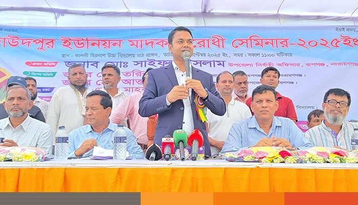 নারায়ণগঞ্জের রূপগঞ্জে মাদক মুক্ত সমাজ গড়তে গ্রামবাসীকে সচেতন করার ব্যতিক্রমী উদ্যোগ নিয়েছেন উপজেলা নির্বাহী কর্মকর্তা সাইফুল ইসলাম। মাদক ও কারবারি দমনের এমন কর্মসূচি নিয়ে উপজেলার বিভিন্ন শিক্ষা প্রতিষ্ঠানের শিক্ষার্থী,অভিভাবক ও স্থানীয় রাজনীতিবিদদের সাথে নিয়ে মাদক বিরোধী সেমিনার, আলোচনা সভা অব্যাহত রেখেছেন তিনি। ১১ সেপ্টেম্বর বৃহস্পতিবার দুপুরে উপজেলার কালনী হিড়নাল উচ্চ বিদ্যালয় মাঠে শিক্ষার্থী, অভিভাবক ও রাজনীতিবিদদের মাদক বিরোধী আলোচনা সভা করেন তিনি।
