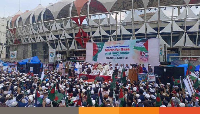 গাজায় চলমান দখল, গণহত্যা, জাতিগত নিধন ও ধ্বংসযজ্ঞের বিরুদ্ধে প্রতিবাদ জানাতে ‘মার্চ ফর গাজা’ সমাবেশ কর্মসূচি অনুষ্ঠিত হয়েছে।